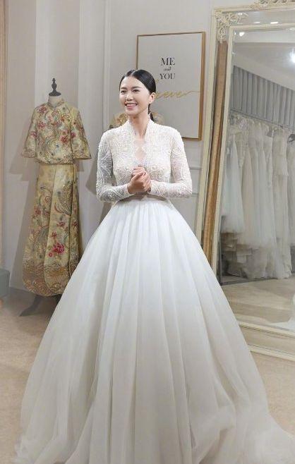 网纱婚纱:网纱婚纱轻盈飘逸,给人一种梦幻般的感觉。这种婚纱适合身材娇小的新娘,能够增加她们的甜美度。